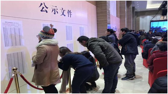 冬日清晨的微微涼意依舊擋不住客戶排隊搶房的熱情,在工作人員的有序引導(dǎo)下,客戶進場有條不紊。為了確保公平公正,本次開盤由乒乓球搖號+公證處公證的形式進行,全程監(jiān)控錄像現(xiàn)場直播。