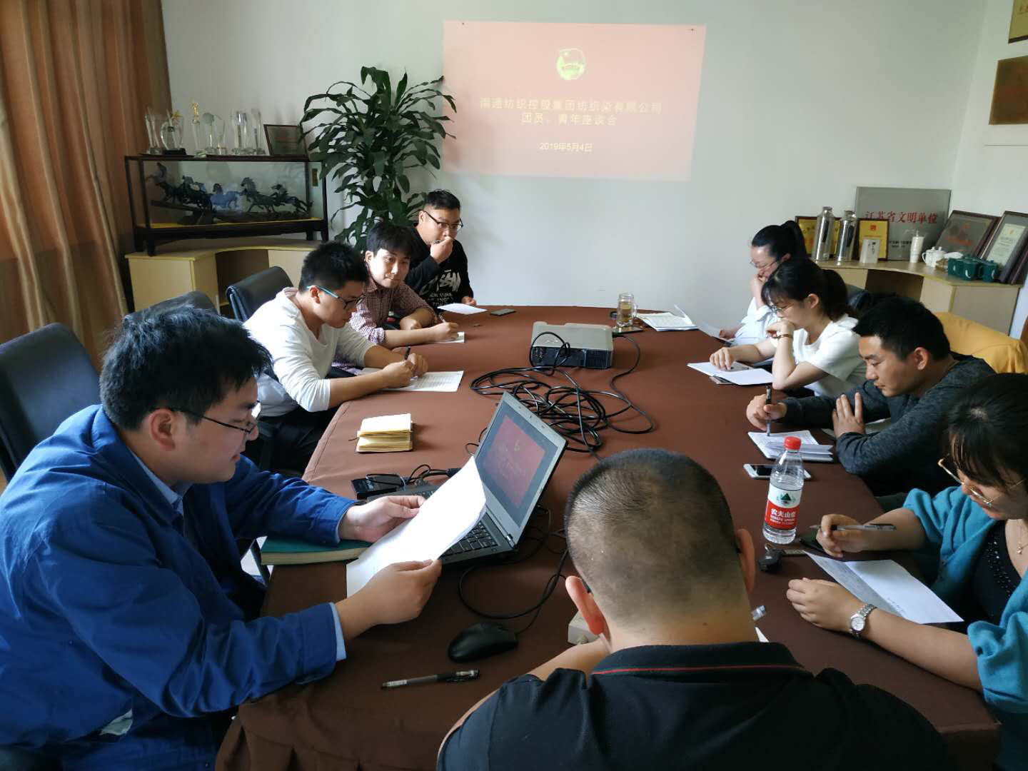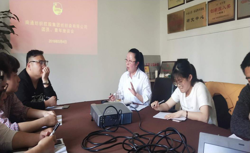今年是共青團建團97周年,五四運動100周年,為進一步弘揚五四精神,激發新時代公司團員、青年以飽滿的熱情積極投身本職工作當中,2019年5月4日,南通紡織控股集團紡織染有限公司團總支召開了以“爭做優秀青年,助力企業發展”為主題的團員青年代表座談會。紡織染黨委副書記盧李星及各團支部團員青年代表共計10人參加了座談會,會議由團總支書記王建興主持。座談會共分為三項議程。首先由王建興代表公司團總支作了《2018年團總支工作總結及2019年工作計劃》。