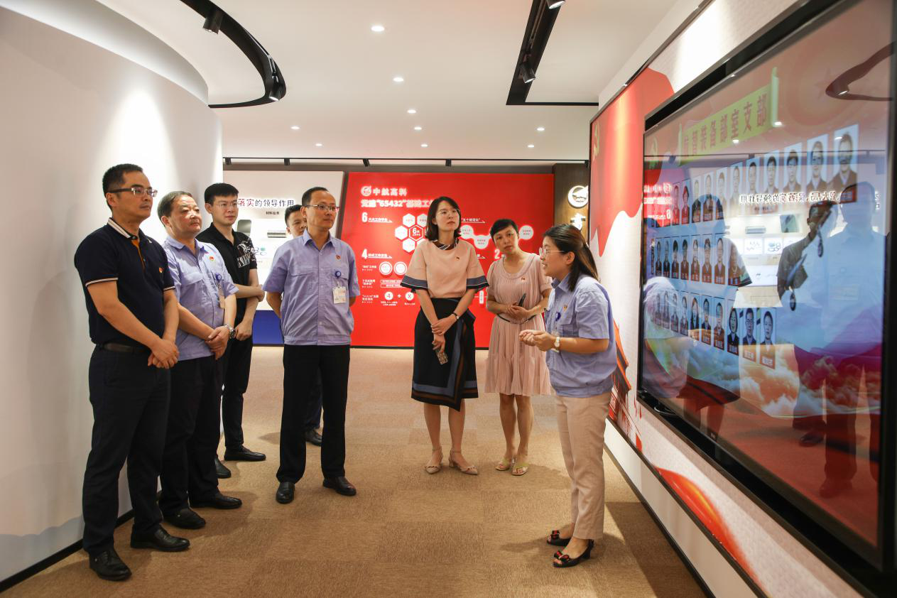 8月13日,南通產業控股集團有限公司黨委副書記黃培豐率黨辦一行到中航高科參觀黨員活動中心并就黨建工作進行座談交流。 中航高科黨委書記王建華、紀委書記沈鋒陪同黃培豐參觀了中航高科黨員活動中心,黃培豐一行對黨員活動中心區域功能劃分、黨建氛圍布設、黨員活動開展等進行了詳細了解。