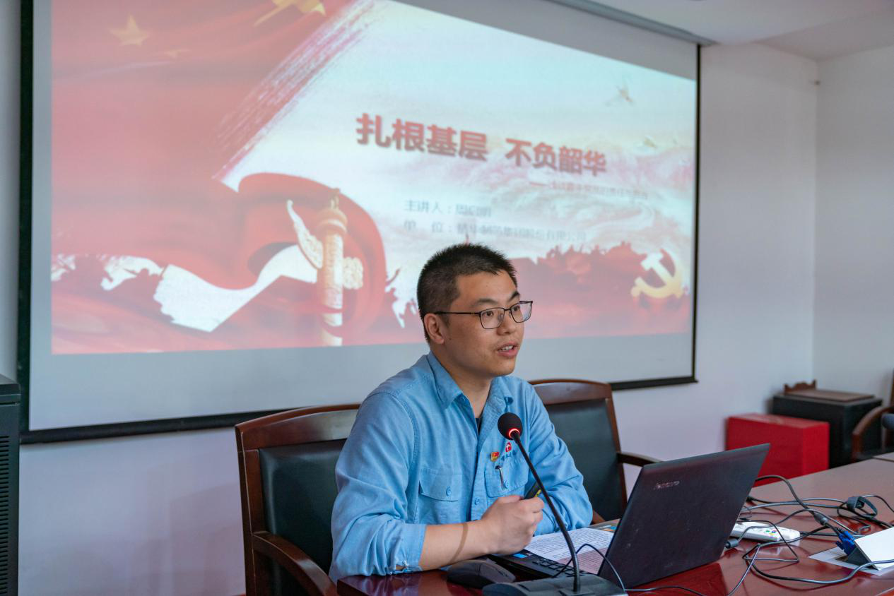 會議首先由市優秀共產黨員、精華制藥職工周啟明講述的《扎根基層 不負韶華》微黨課開篇講述了自己和企業2020年的春天這個特殊的時期,揮灑汗水,服務大局,比拼奉獻的難忘經歷。通過他真情的講述,讓在場同志真切感受到了我國制度的優越性,體會到了青年黨員在本次防疫“大考”中的責任與擔當,接受了一場黨性的洗禮。