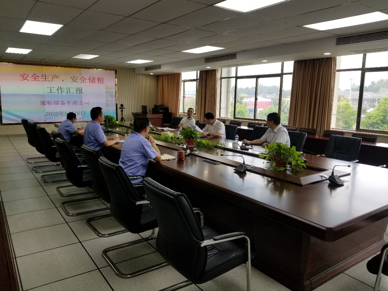 9月16日上午,產控集團黨委書記、董事長張劍橋,黨委副書記黃培豐一行對南通通糧糧食儲備有限公司進行安全儲糧、安全生產檢查并調研指導工作。通糧儲備公司領導班子成員參加調研。