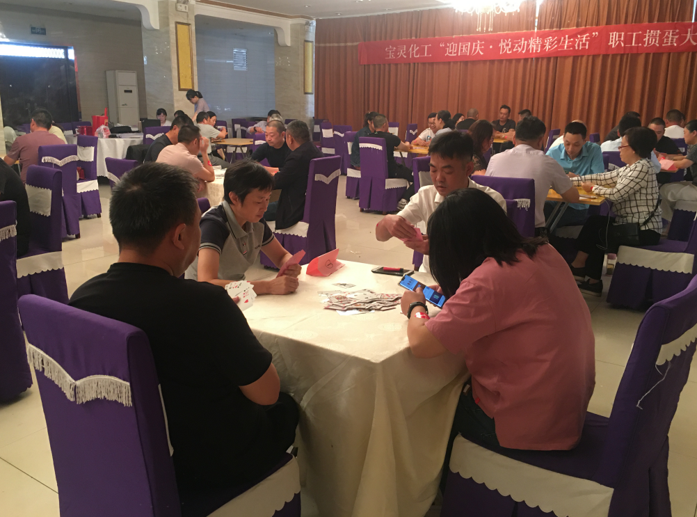 一年一度的國(guó)慶、中秋佳節(jié)將至,為慶祝新中國(guó)成立71周年,進(jìn)一步提升寶靈群眾性文化活動(dòng)的廣泛參與性,豐富和活躍職工的業(yè)余文化生活, 經(jīng)公司黨委研究,決定繼續(xù)舉辦寶靈化工“迎國(guó)慶·悅動(dòng)精彩生活”職工摜蛋大賽。各車間、部門高度重視,積極發(fā)動(dòng)并踴躍報(bào)名,共有44名選手參賽。