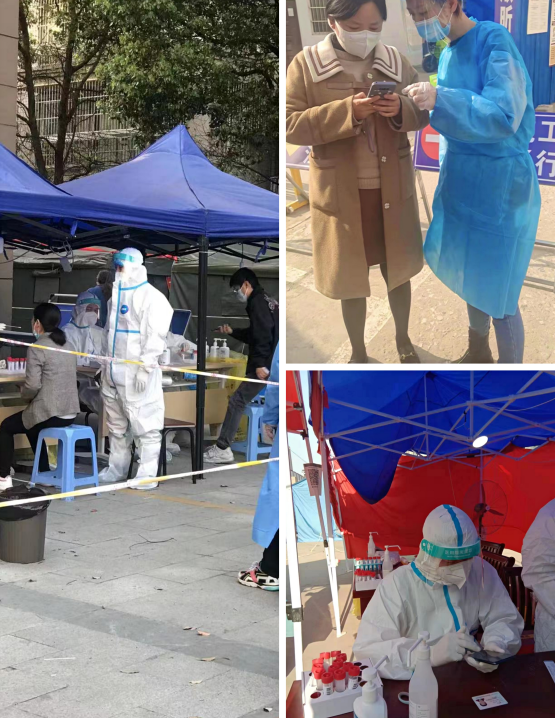 “您好,請配合我們測量體溫”、“請大家?guī)Ш每谡帧?、“請?zhí)崆皽?zhǔn)備好身份證”······他們在現(xiàn)場協(xié)助查驗雙碼、測量體溫、維護(hù)現(xiàn)場秩序、對老人進(jìn)行掃碼幫助等,大慶社區(qū)、大南社區(qū)、濠東社區(qū)等均可見揚子碳素志愿者們忙碌的身影。